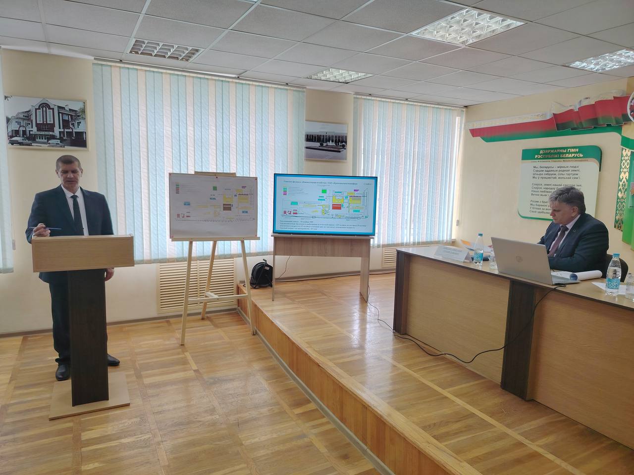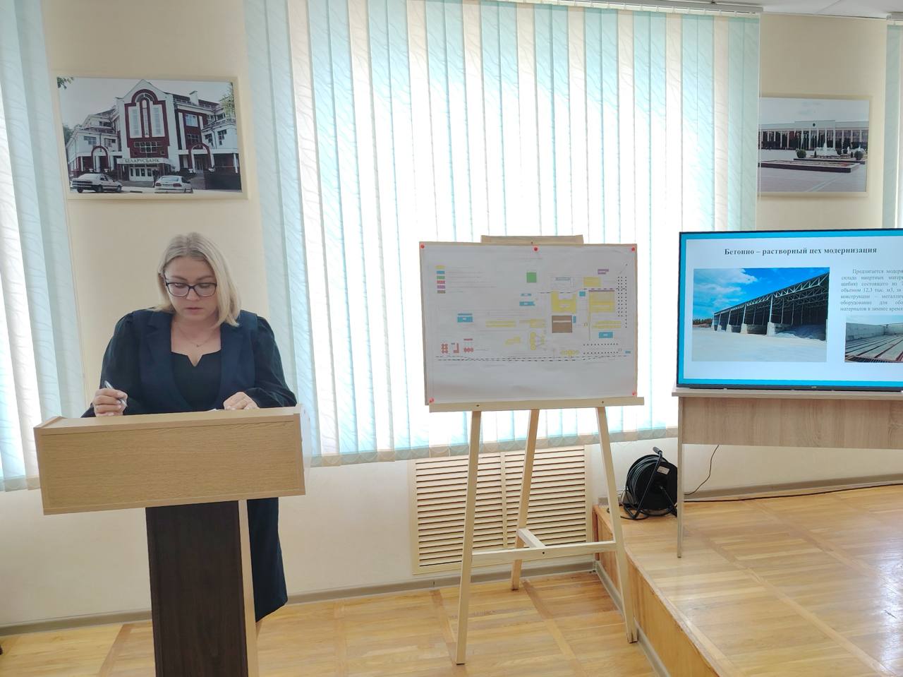 Директор филиала «Новополоцкжелезобетон» Александр Метла, заместитель директора – главный инженер Сергей Прошунин, ведущий инженер-технолог филиала Вероника Поливко рассказали о проектах по обновлению формовочного и арматурного цехов, бетонного узла, а также о планах по развитию энергосетей и дополнительных услуг в сфере электро- и водоснабжения.